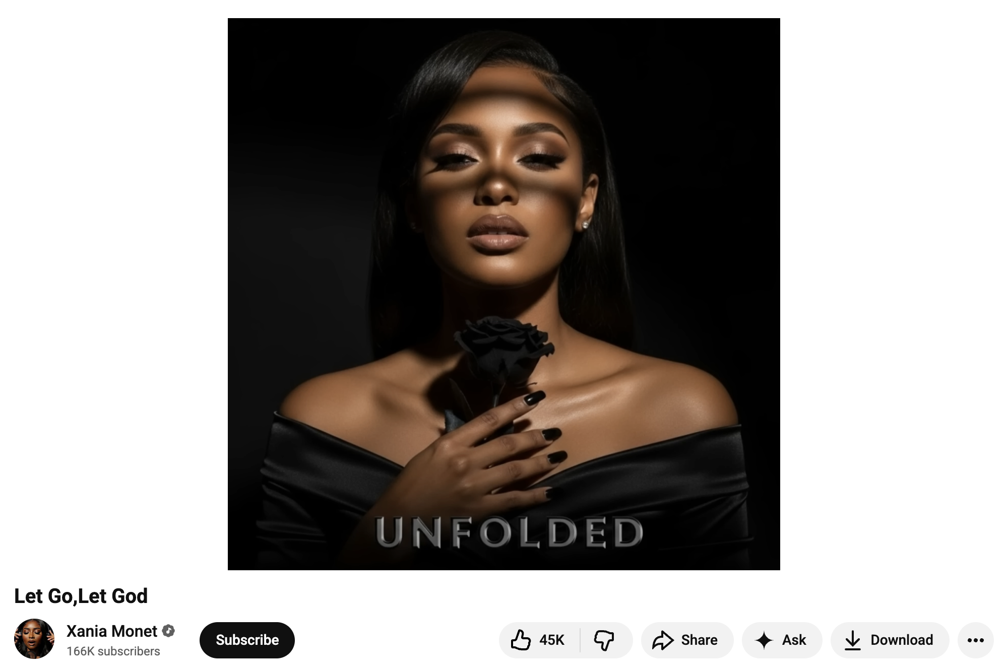 Around the same time, the steady drumbeat of AI-generated music headlines began landing at a faster clip than ever. To wit: a pair of hilariously two-faced press releases from Spotify, exclaiming their "strengthened AI protections for artists and songwriters" while announcing partnerships with major record labels and rightsholders to "develop responsible AI products that empower the artists and songwriters they represent"—nevermind the fact that Spotify is already ground zero for AI-generated music slop. Which is what listeners want, it seems: per Billboard, "at least one AI artist has debuted in each of the past five [Billboard] chart weeks, a streak suggesting this trend is quickly accelerating." Turns out there's gold in those slop buckets, too: "Xania Monet," one of the fake slop-artists in question, was "signed" to a multimillion-dollar deal on a label led by a former Interscope executive. (What does it even mean for an AI slop-artist to get "signed" to a label? Who gets paid? Who knows.)