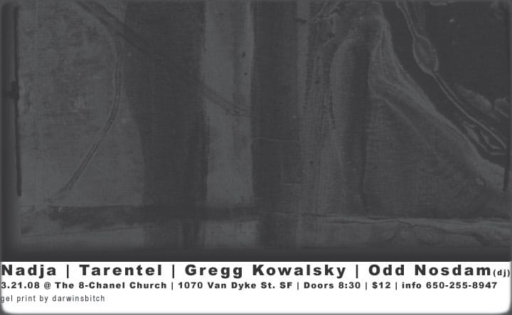 [The shows we were playing back then were diverse in style.] Tarantel was certainly not ambient, right? I wouldn't say Yellow Swans either—they were pretty harsh. Other acts that were playing were like The Skaters, Axolotl, and Starving Weirdos would come down from Arcadia.