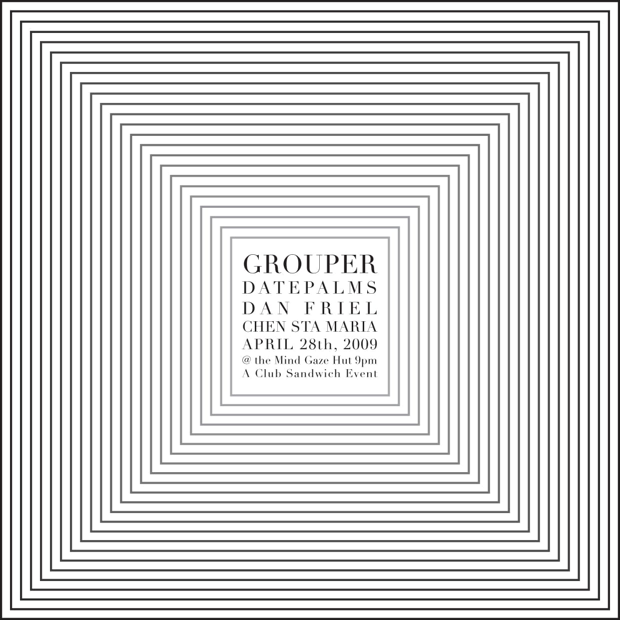We didn't really pay anybody, either. It was really just a door split, and everybody was down. We were just straight up. We were like, We're not gonna make any money, and we'll split the door evenly. Maxwell and I had jobs and homes and we weren't working musicians, per se. But everyone was still game. We had Bill Orcutt play. Charalambides played. Grouper, too. Oneohtrix Point Never. Dan was a friend, so he played.
