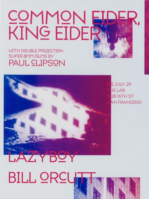 We had people from all around. We had some people from New York. Eli Keszler came out—I can't remember how I met him. I think I just met Eli over email, and we invited him. We tried to get some international people. We invited Richard Youngs, but he couldn't come. But people from all around the [U.S.] came. It was really so DIY.